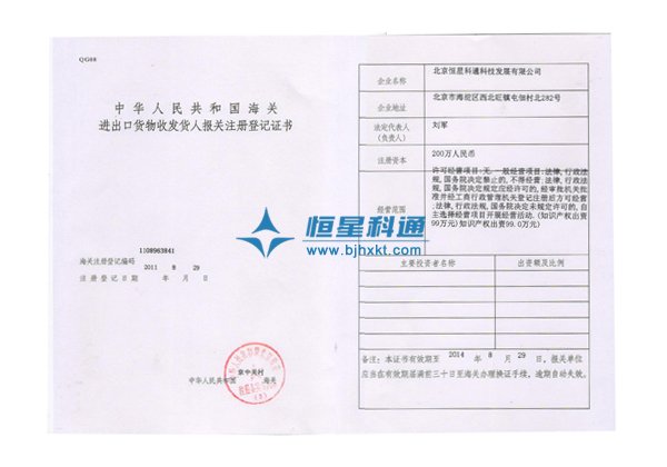 海關(guān)進出口貨物發(fā)貨人報關(guān)注冊登記證書 | 自理報檢單位備案登記證明書 |
